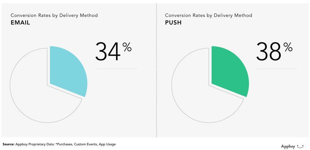 We found that apps that used send-time optimization had significantly stronger results, increasing their conversions from email by 34% and from push notifications by 38% over fixed time-based scheduling.