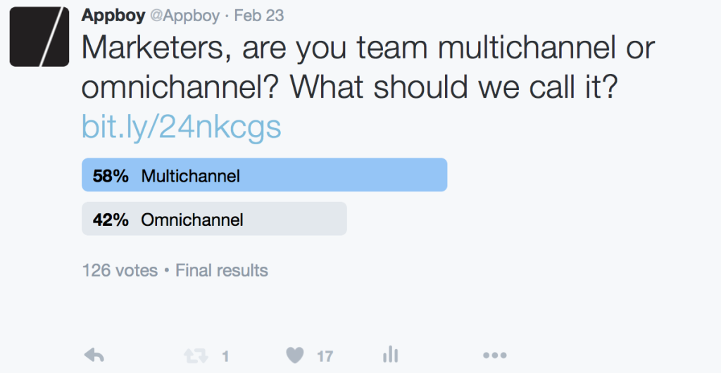 While the situation is of course different, we’re seeing a similar type of disagreement here. People who think that “multichannel marketing” effectively conveys a coordinated marketing strategy involving multiple channels are using that term; people who don’t are using “omnichannel marketing” instead.