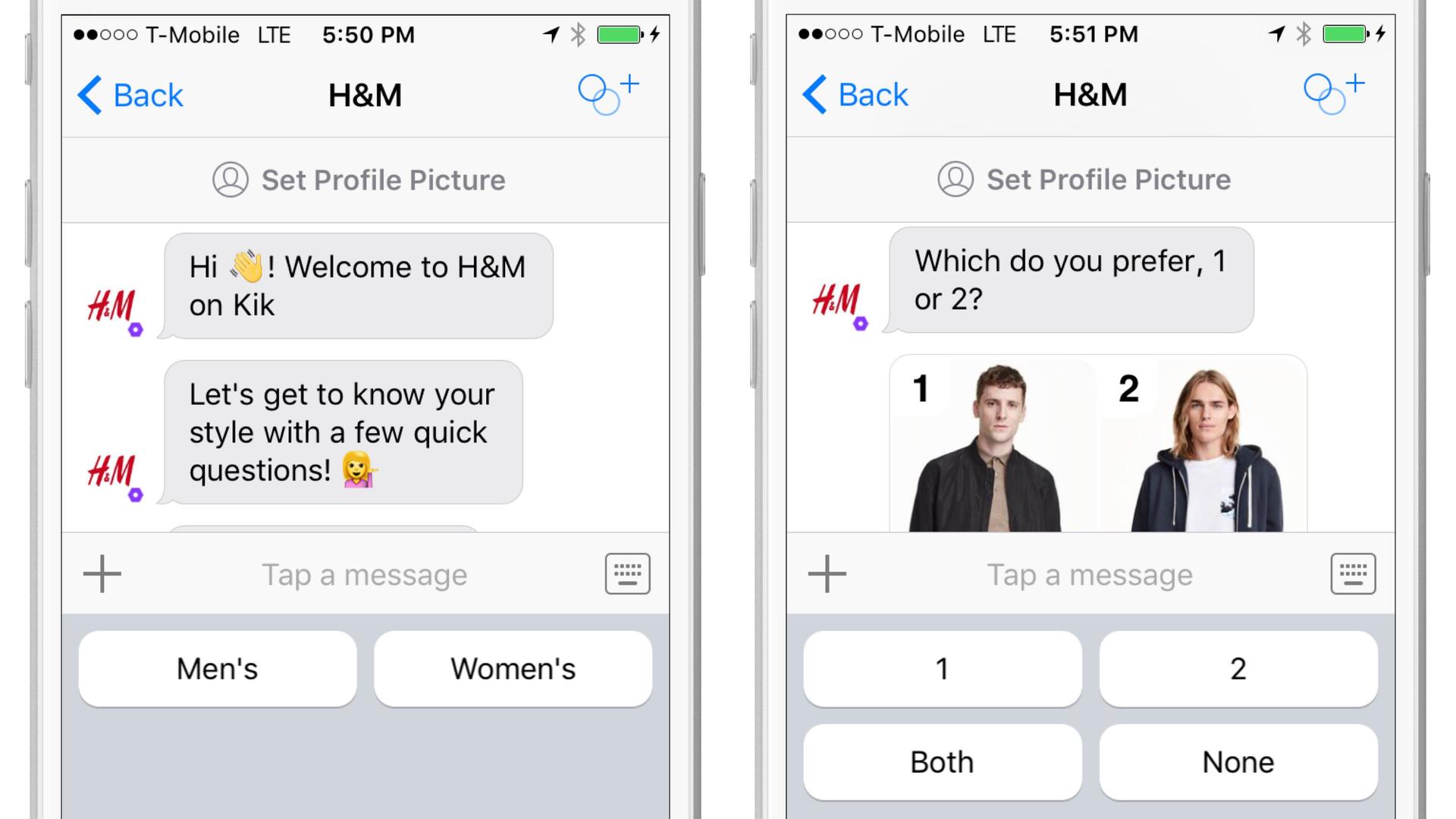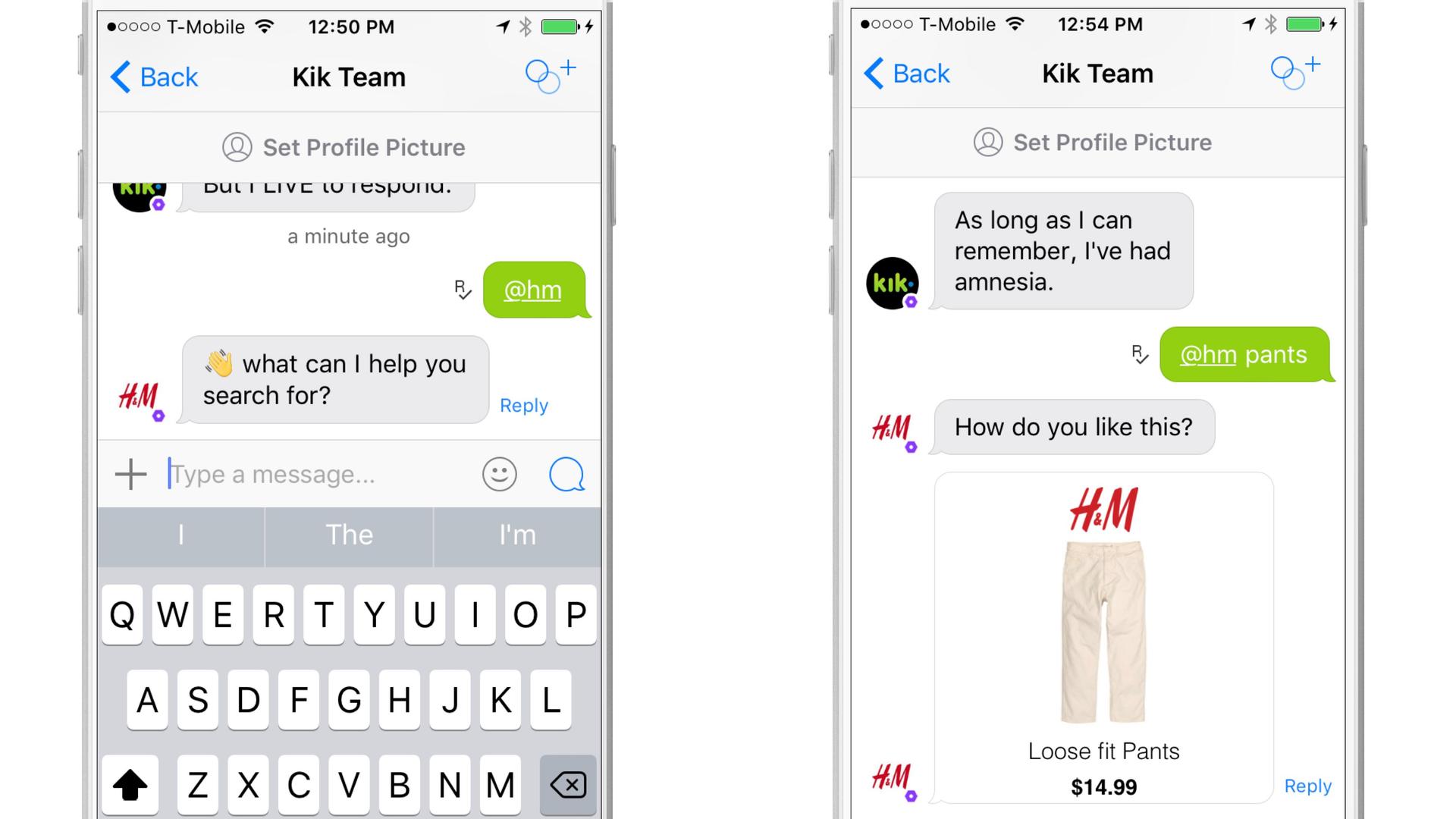 However, there’s an interesting wrinkle—if two users are having a conversation on the platform, either one can summon up a brand-associated bot by writing @ and the name of the bot (so @hm, for instance, would call up the H&M chatbot). This means that highly engaged customers can effectively advertise your brand to their friends and family by using your chatbot to take actions like placing orders or making reservations mid-conversation. Not every brand will be well-positioned to leverage this function to expand their audience, but the potential is there if you’re active on Kik and have an audience of enthusiastic customers.