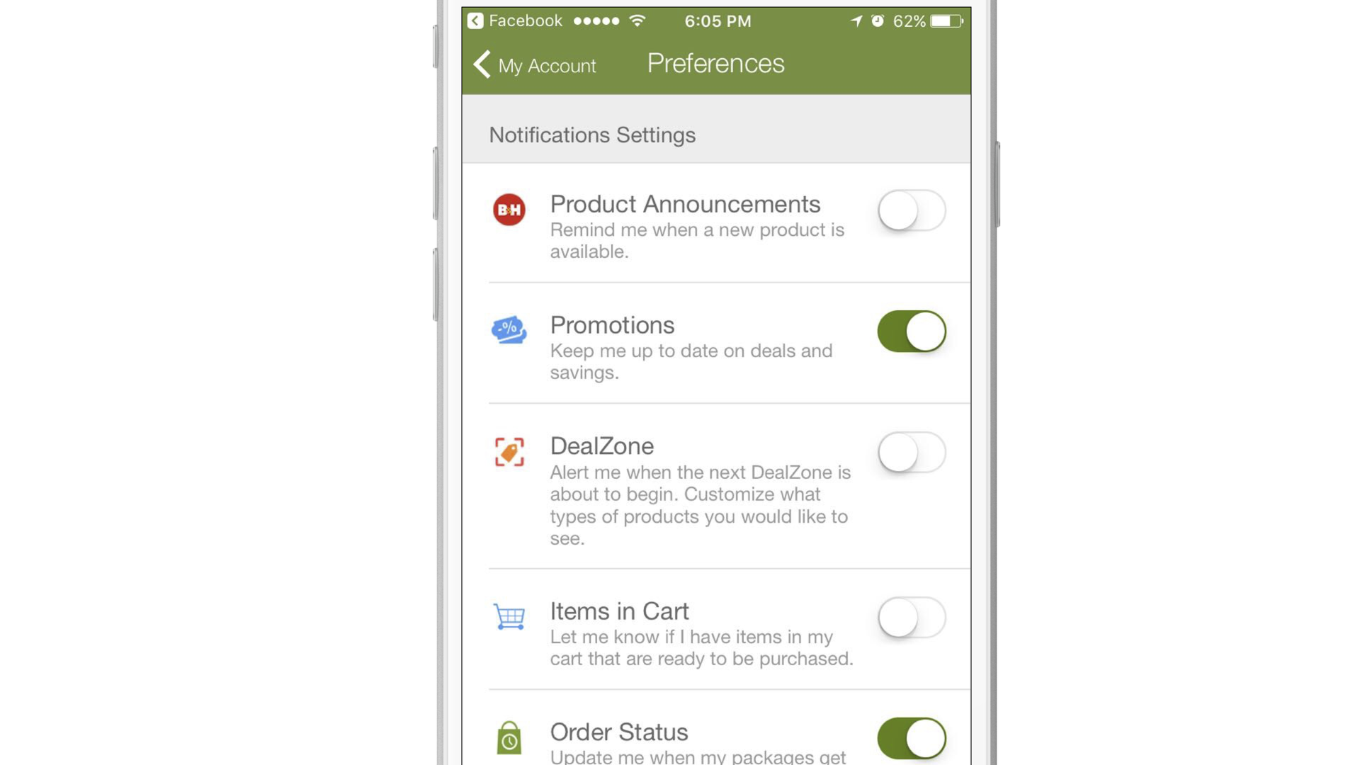 Since the volume of B&H’s notifications is much lower than a content related app, there’s no need to give users the ability to adjust message frequency in their preference center. By sticking to the basics and allowing customers to pick and choose the kinds of alerts they’re interested in, B&H’s simple, clear preference center promote a more pleasant, more valuable brand experience.