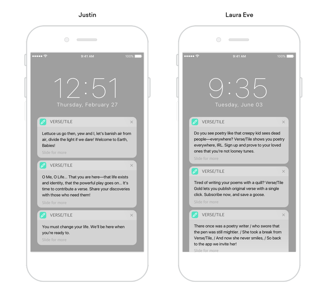 We asked our poets to go a little outside their comfort zone and put together three pieces of push notification copy, including: