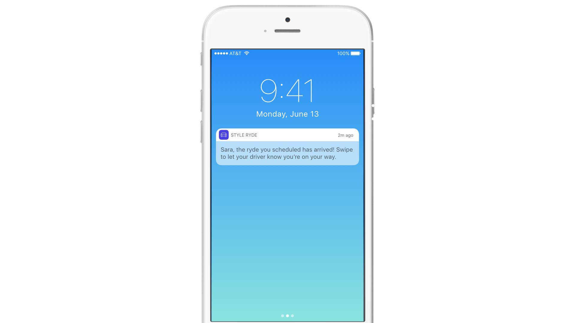 An example of a push notification an on-demand car service app might send