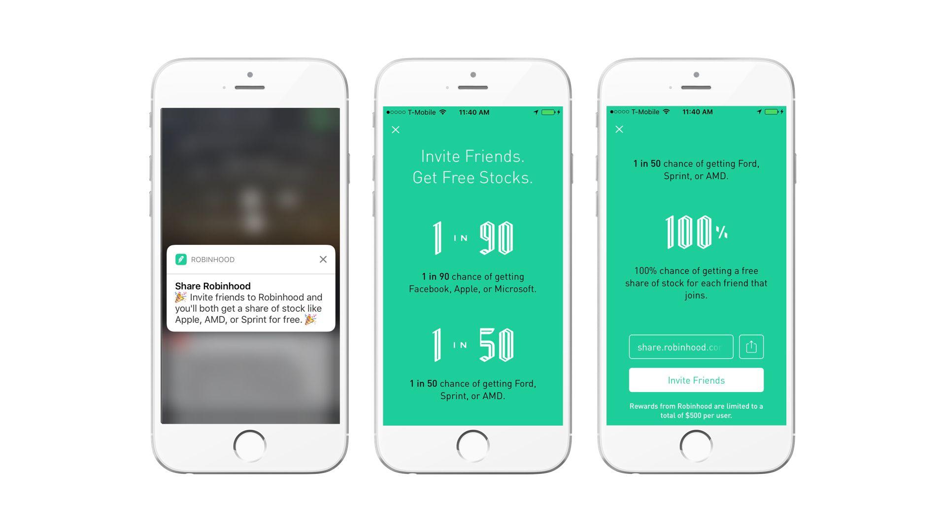 While asking users to invite friends to an app can sometimes come across a little needy or intrusive, Robinhood does an exceptional job of demonstrating value to their users and making it as easy as possible to share. Here’s how Robinhood gets it right: