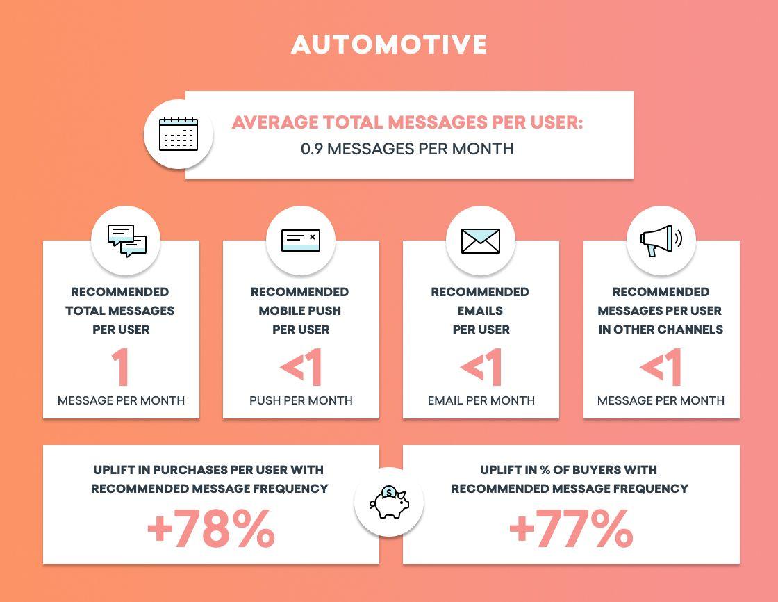 While today’s automotive buyer makes decisions faster than in the past, the purchase journey for this industry is still a lot slower than the buying cycle you see with mobile gaming, for instance. That makes it important for automotive brands to pace their messaging, driving awareness and engagement without overwhelming the customers they’re looking to reach.