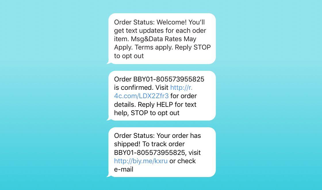 Everyone knows that joy of clicking “buy” when they order something online. It’s waiting for the product you’ve ordered to actually be delivered that’s the hard part. With consumer expectations around delivery time getting higher and higher—driven in large part by Amazon—many brands have responded by using SMS to communicate the real-time status of each order from purchase to delivery. We’re even seeing some sophisticated brands using the medium to communicate more complex order status—such as items being out of stock or shipping occurring slower than expected—to temper expectations or potentially seek alternative products.