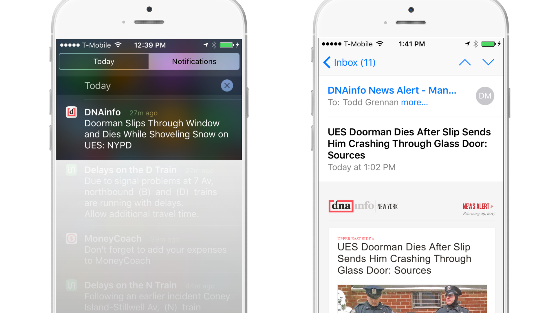 Local news brand DNAinfo used a multichannel messaging approach to keeping readers up to date on the latest snow-related news during the storm. By pairing push notifications and emails, the brand was able to reach users with this (very sad) breaking news via push and then provide a second engagement point via email for customers who missed the first message in the haze of storm-related notifications.