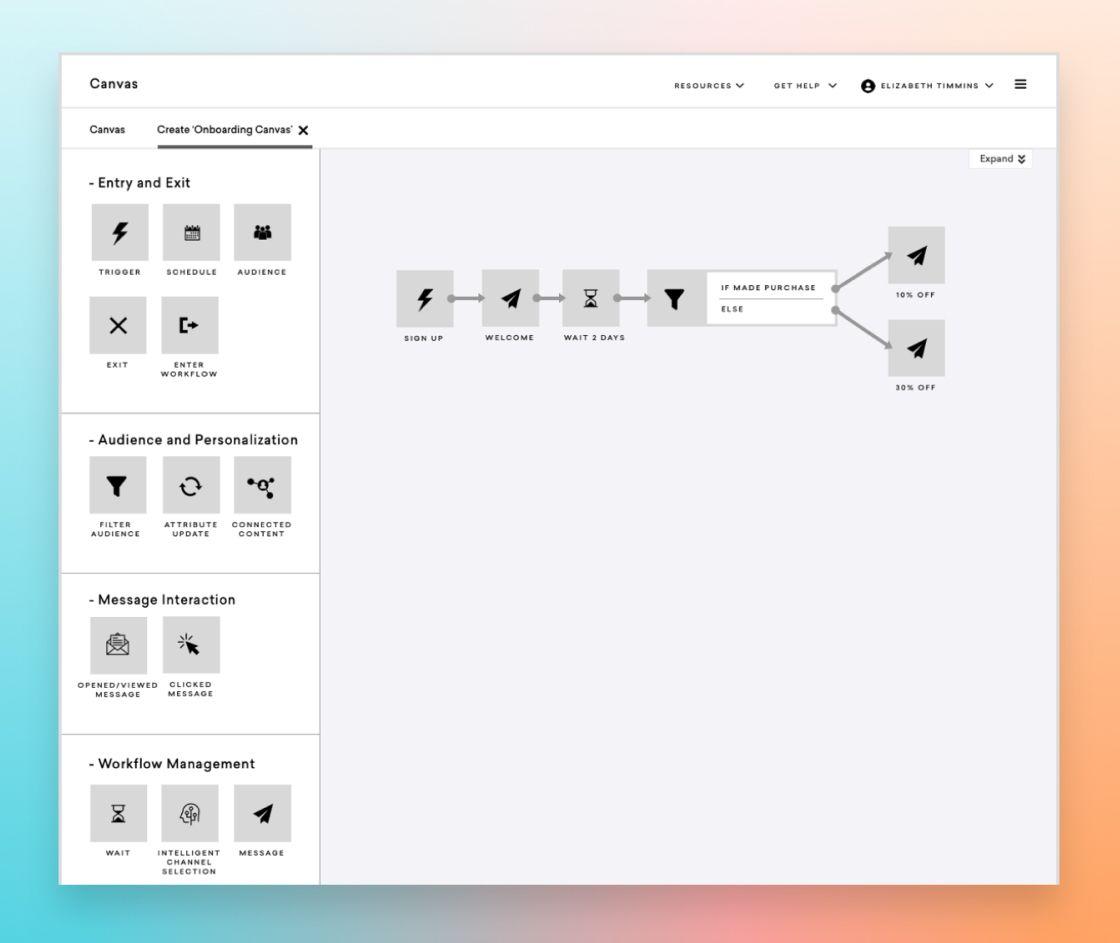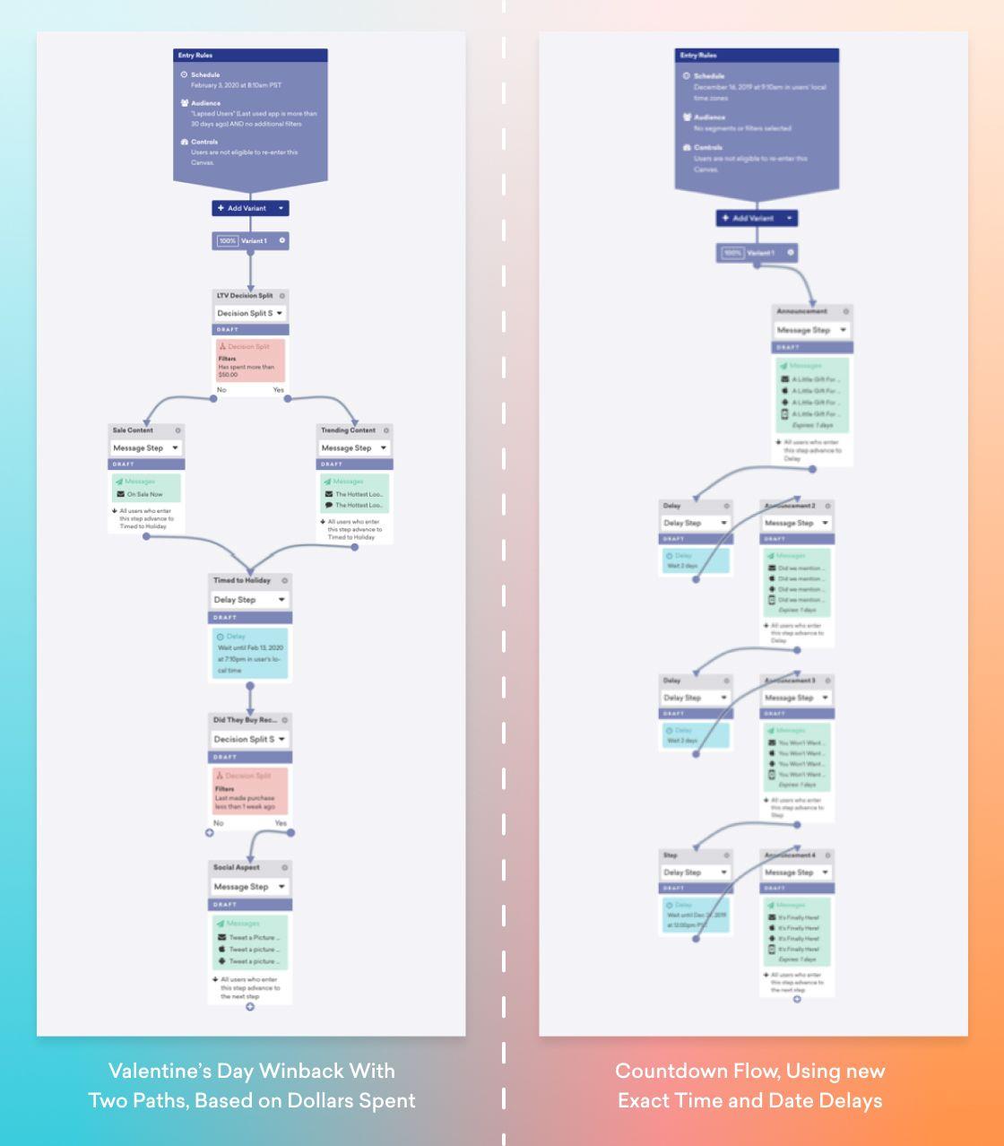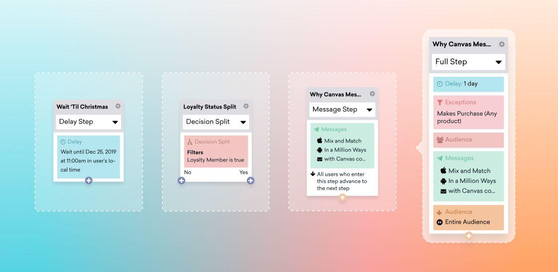 Here’s a sneak peak at the future of Canvas, a future that we’re building today. We’re splitting out the UI for different types of Canvas steps, and creating a more flexible interface. The Canvas of the future will be more flexible, more intuitive, and even easier to use. The experiments that your team have in their heads will come to life more easily, and sophisticated and effective campaigns will be easier to imagine and execute.