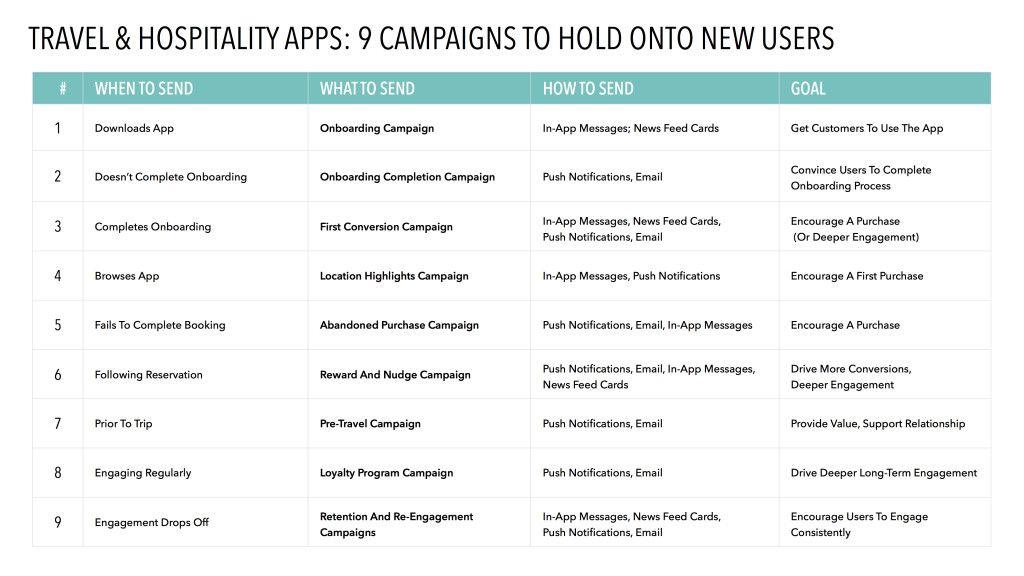 The basic principles of app user retention are pretty clear: if you can get new customers to understand the value that your app provides and how to take advantage of it, they’re more likely to return; and if you use your campaigns to encourage them to return consistently, your brand is more likely to be able to retain, monetize, and build a durable relationship with them over the long term. But what if your brand is in a vertical—like travel and hospitality—where some customers only use your app to book a flight or reserve a hotel room a few times per year?