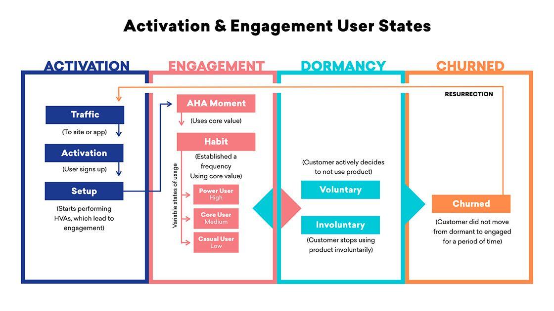 Cohorts can also be segmented by geography, time, business size, etc., and if you can understand these cohort behaviors, you can more easily determine the retention curve by segment and increase the chances that each one is a smile, rather than an endless decline. To get there, your customer onboarding and ongoing messaging experience need to effectively drive high-value actions (HVA) which will result in better engagement. That way, your new customers will be nudged to become engaged customers (in what we call an “aha moment”), and your engaged customers with low frequency will be encouraged to increase their frequency.