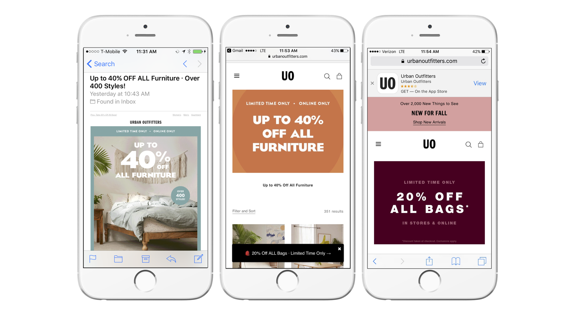Urban Outfitters knows better. By taking advantage of deep linking, the brand ensured that customers engaging with their campaign were brought directly to the page on their website focused on the furniture sale in question, ensuring a smooth, seamless customer experience and reducing the chances that interested customers left without browsing the available items.