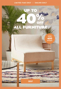 While Urban Outfitters is perhaps best known for its clothing, the brand sells a wide array of lifestyle-focused items, from books to housewares. And when the time came to highlight a major promotion on its furniture offerings, Urban Outfitters created a cross-channel promotional campaign that put the visual side of their brand front and center. Here’s what made it special:
