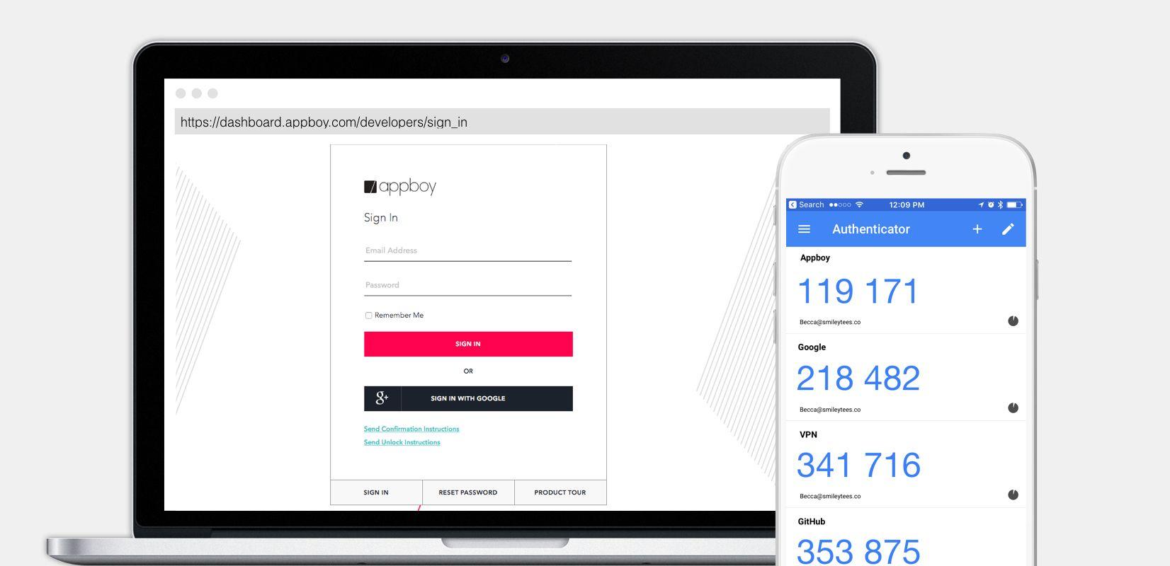 Appboy now supports Google two-factor authentication. Log into Appboy, and verify your identity using an app like the above.