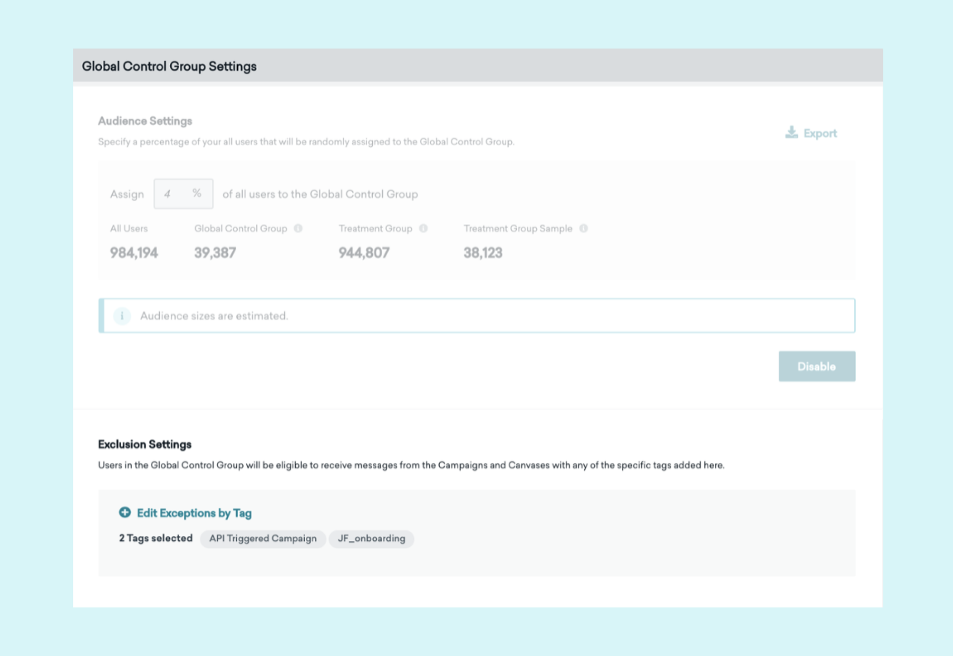Thankfully, setting up a Global Control Group is a breeze in Braze.