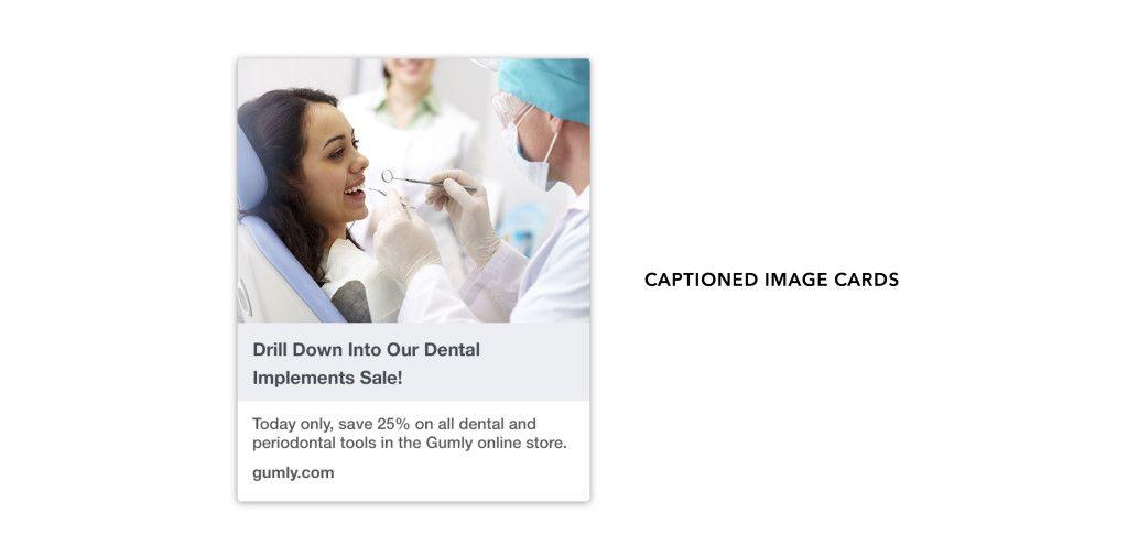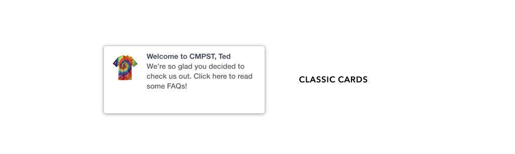 This type of card supports small images and have space for a headline and body text. They work best in situations where you’re looking to convey a message to customers that’s short, simple, and to-the-point.