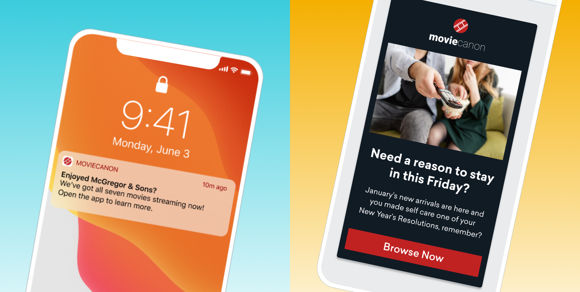 Streaming services also produce a wealth of data for brands that know how to leverage it. By getting a cross-platform view of your customers, you’ll know when to send messages, which device to send them to, and which ones will resonate. For example, let’s say you have a customer who enjoys romantic comedies and typically logs in around 8 pm. Sending a push notification using send-time optimization with a recommendation for your newest saucy title will improve her engagement and reinforce brand loyalty.