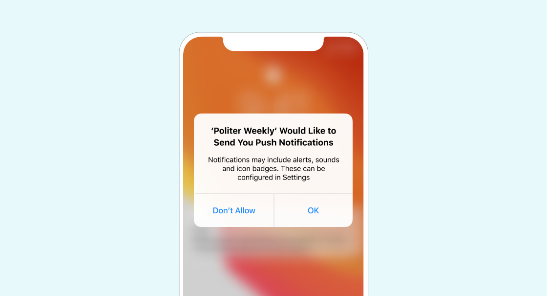Too many times, we see brands immediately prompt new customers to opt in to push with a one-time generic system prompt before they know if or why they even should agree to receive these messages. This often leads to lower opt in rates and fewer channels you can use to reach your customers on.