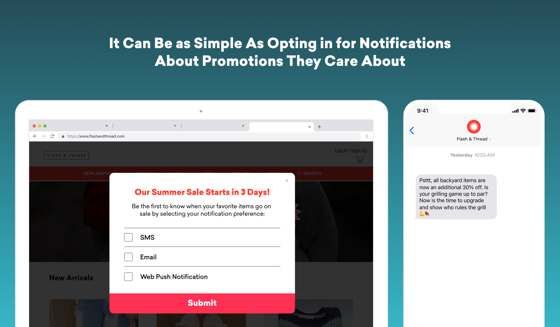 #2: Get anonymous browsers to opt into their preferred channels (SMS marketing, email marketing, and web push notifications)
