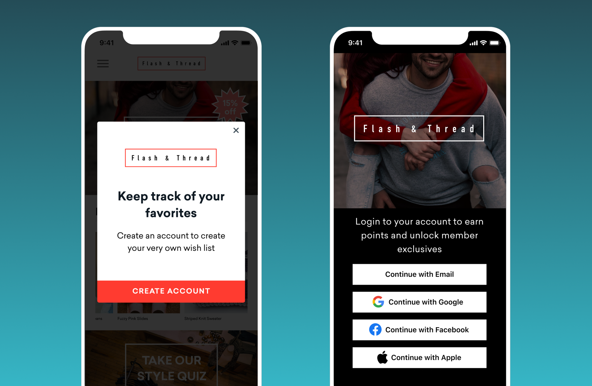 What are the advantages of creating an account with your brand? Whether it's to be able to keep track of a customer's purchase history, earn rewards points, receive updates about orders, enjoy a personalized browsing experience, or save items to a wish list, using in-browser or in-app messaging to communicate the top reasons why users may want to create an account can do a lot to encourage customers to take that step.