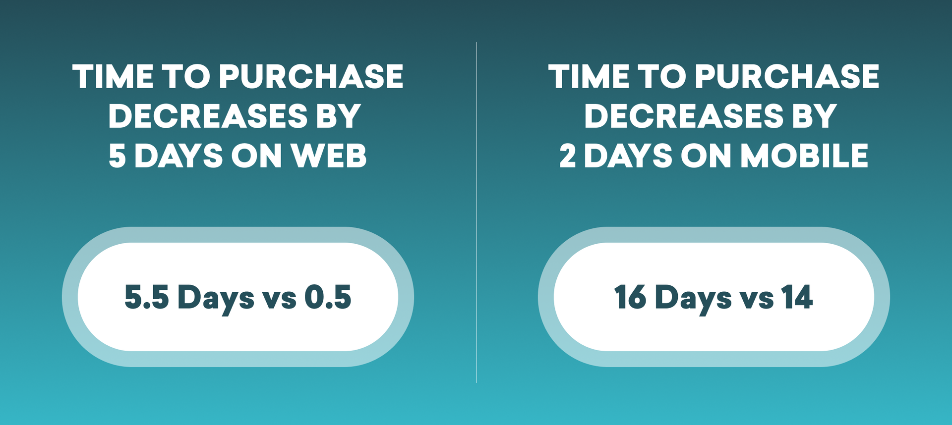 That first 24-hour window surrounding a customer’s initial anonymous session is your brand’s opportunity to have the greatest impact. We've found that brands that take action within the first day see time-to-purchase decrease for both web and mobile users.