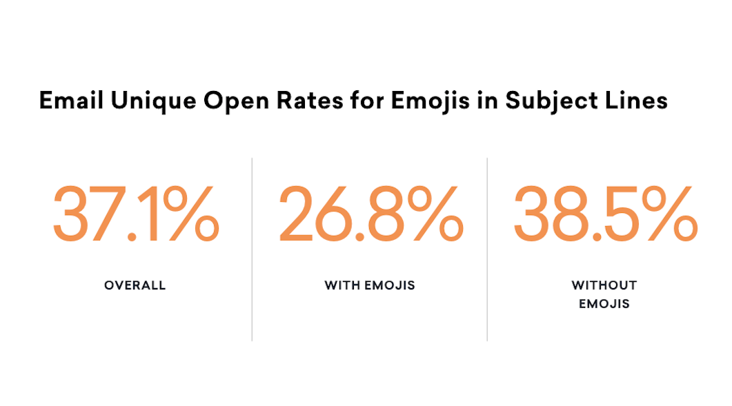 That’s right—emails that use emojis in their subject lines see unique open rates that are a full 28% lower than the average unique open rate for marketing emails. Why? Well, there are a few possible factors.