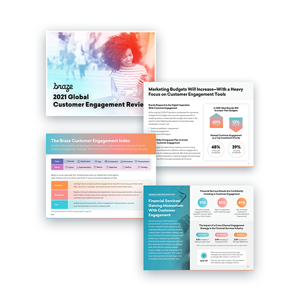 Find out in our first annual 2021 Global Customer Engagement Review. We tasked Wakefield Research to conduct a survey to help marketers identify opportunities to improve their results. That improvement can be significant: More than half of the companies we ranked as most mature in our Customer Engagement Index exceeded their revenue goals for 2020.